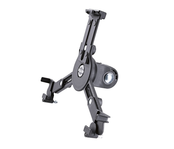 Give your Tablet devices a safe and secure hold: The Universal Tablet Holder can be adjusted variably to accommodate different tablet sizes without needing tools and holds the devices securely and effectively for many different situations. Be it on stage, in rehearsal rooms or at home - thanks to the 3/8" female thread the holder can be attached to for example any microphone stand quickly and simply. The individually adjustable support arms can accommodate the use of tablets ranging in height from 222 to 334 mm and width from 128 to 232 mm (for example iPad, iPad Air, iPad Pro, Amazon Fire HDX 8.9, Samsung Galaxy Tab from 9.7, Google Nexus 9, Asus Transformer or Microsoft Surface as well as Surface Pro). The depth of the tablets can vary between 6 and 11 mm. For the first use of the tablet holder the support arms settings are made by adjusting the clamp screws to the size and depth of the tablet. For other uses the tablet can be attached and detached quickly and simply through a snap lock. This provides maximum flexibility and mobility. A handy wing nut allows one to adjust the angle, so that each user will easily be able to find their ideal individual position. The tablet can switch between portrait and landscape positions. The tablet is kept in place, there is no danger of the tablet switching position by itself.